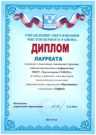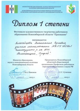 Участие в Фестивале художественного творчества работников образования Новосибирской области "Признание" 2011 г., 2013 г.