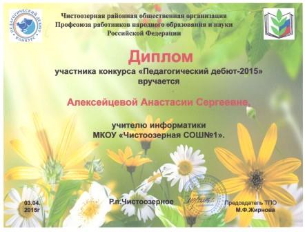 Диплом участника конкурса "Педагогический дебют" 2015 г.