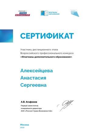 Сертификат участника дистанционного этапа Всероссийского конкурса "Флагманы дополнительного образования", 2022 г