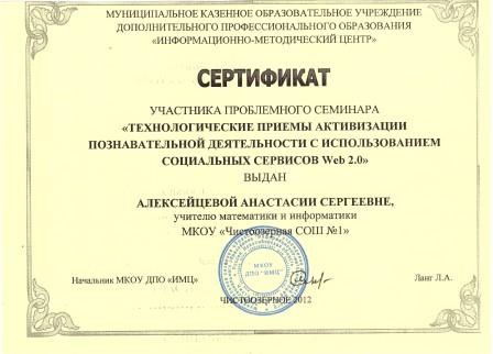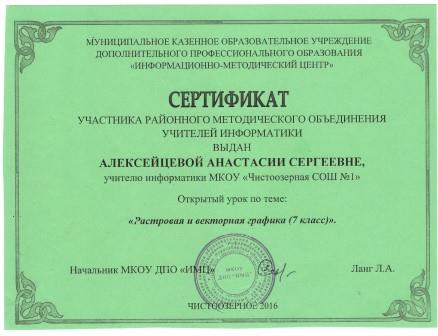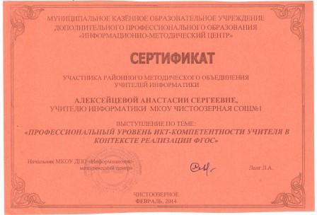Сертификаты участия в РМО учителей информатики 2012 г., 2014 г., 2016 г.