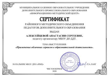 Сертификат участия в РМО педагогов дополнительного образования 2020 г.