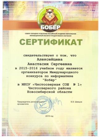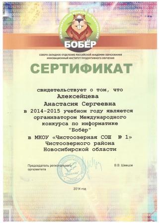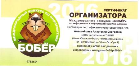 Сертификаты организатора Международного конкурса по информатике "Бобер"
